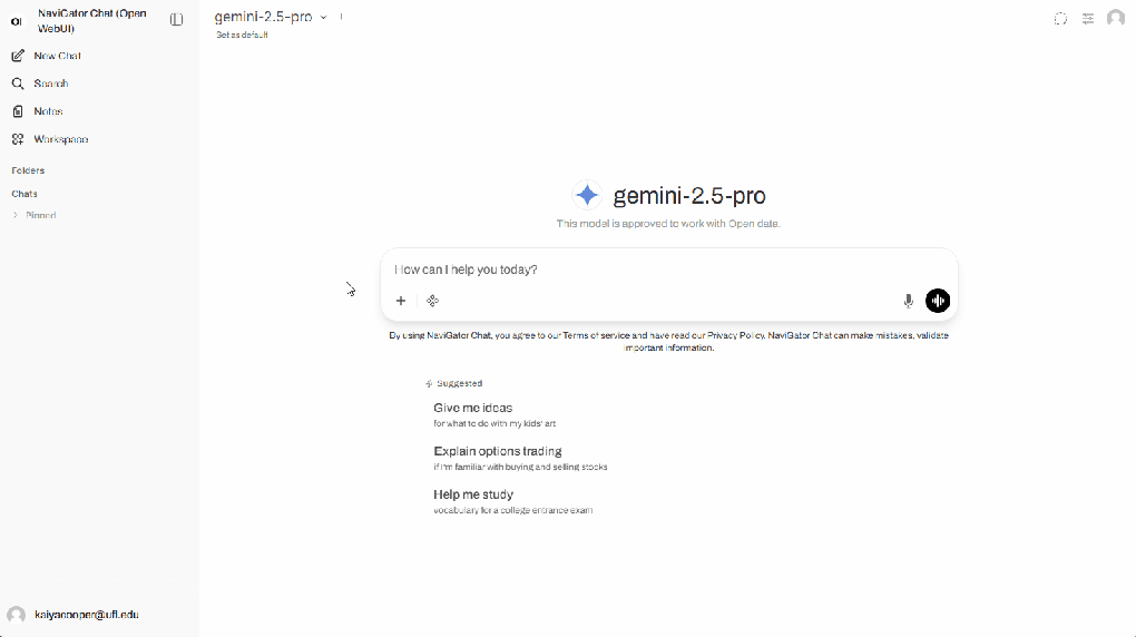 - Drag and drop the files into the conversation list on the left side of the NaviGator Chat page.