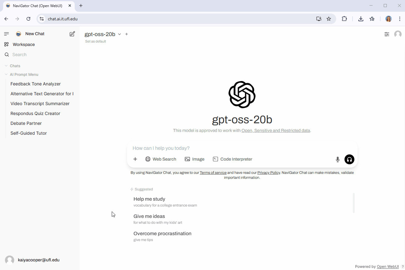 - If not already open, expand the left-side conversation list by clicking on the menu button at the top left of NaviGator Chat.